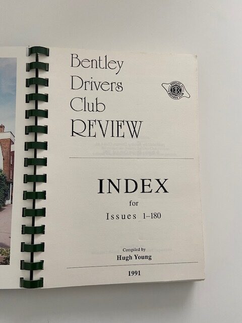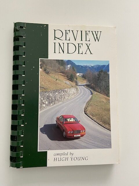 An index compilation of Bentley Drivers Club reviews, essential for researchers and marque enthusiasts. Softback in generally very good condition for age, comb bound.