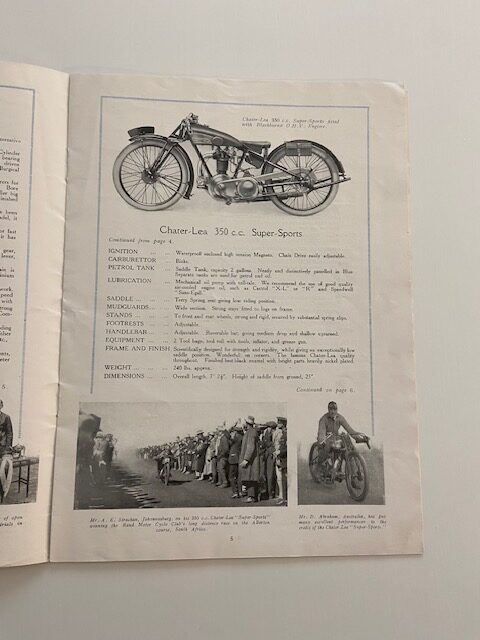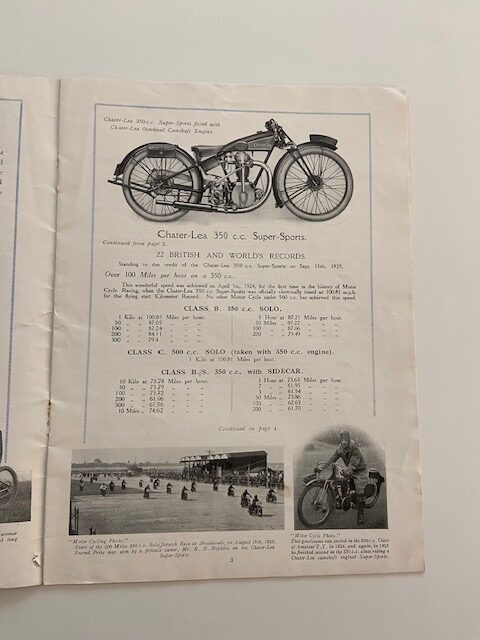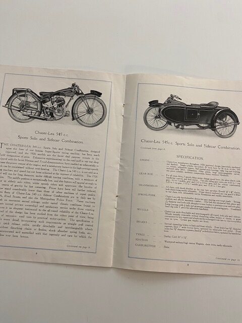 Rare original 12 page brochure covering the details and specifications for new Chater-Lea motorcycles and sidecars/box side carriers of the day.