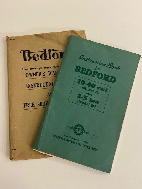 Instruction book for Bedford 30-40 cwt and 2-3 ton vehicles, soft cover in generally good condition ofr age, minor marking and scuffs, complete with original envelope.