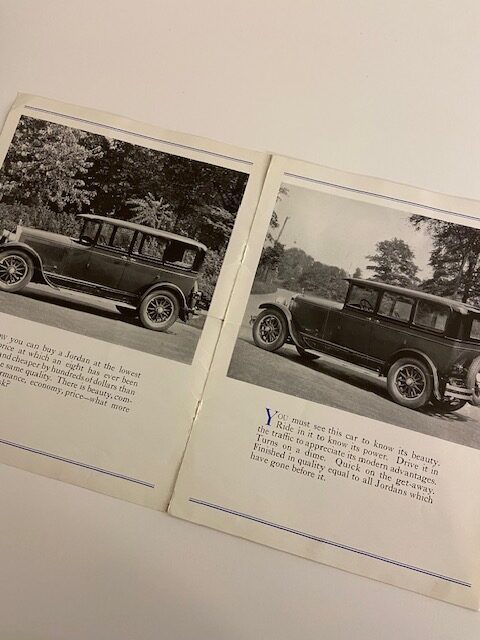 Rare eight page leaflet selling the Jordan Car line – black and white photos of key models with sales copy.