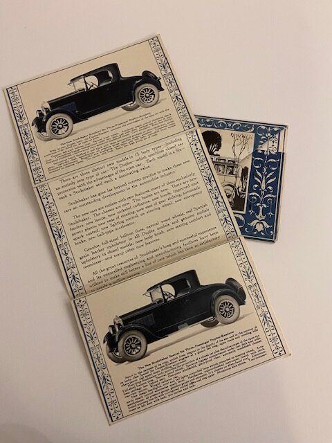 Studebaker Six Big Special Standard sales mailer/brochure. Features images and descriptions of 13 Studebakers (Big-Six, Special-Six, and Standard-Six models). Back has a write-up and specifications.