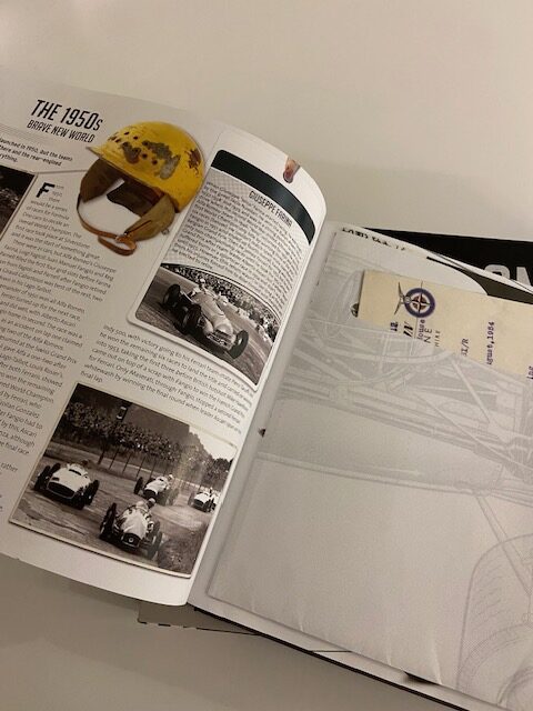 A visually engaging, memorabilia-style presentation featuring replicas of documents, photos, and ephemera from F1 history.