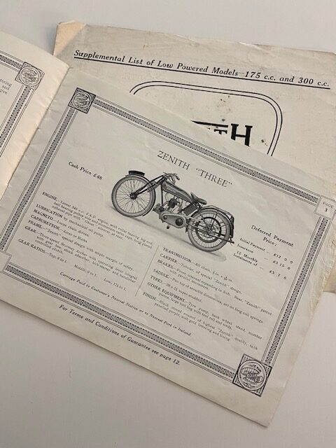 Rare original range leaflet for Xenith Motor Cycles plus supplemental list of low powered models leaflet.